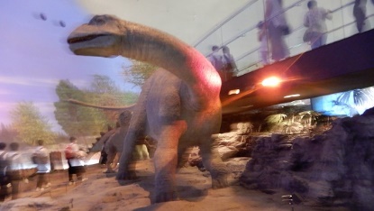 建物の入口よりエスカレーターで下に降りると、恐竜が発生した、1億2千年前の時代 から、地上に向かって登って出口(現在)につながっているように展示されている。