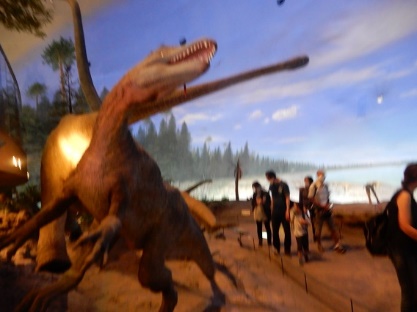 階段を昇って出口に近づくと人類の登場が展示されている、だが、展示された恐竜の種類 ・名前等がよく分からなかった、ここらへんは、学校教育で欠落していることがよく 分かる、孫の方がよく知っているのに驚く。