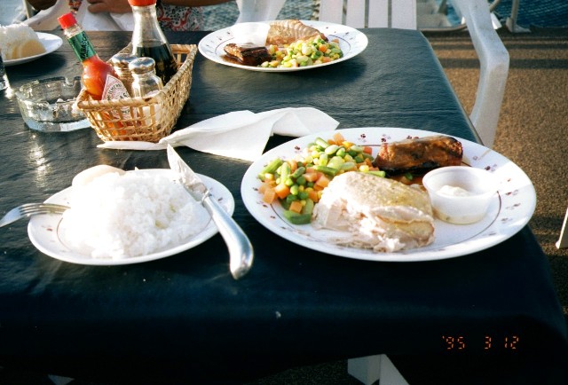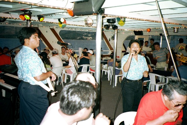 サイパンのディナークルーズです。程々の料理とミュージックと夕日で、程々の日焼けと、ハッピーな気分です。