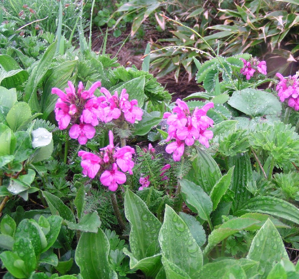 えハクサンイチゲ、ミヤマシオガマ、ミヤマキンバイ、
