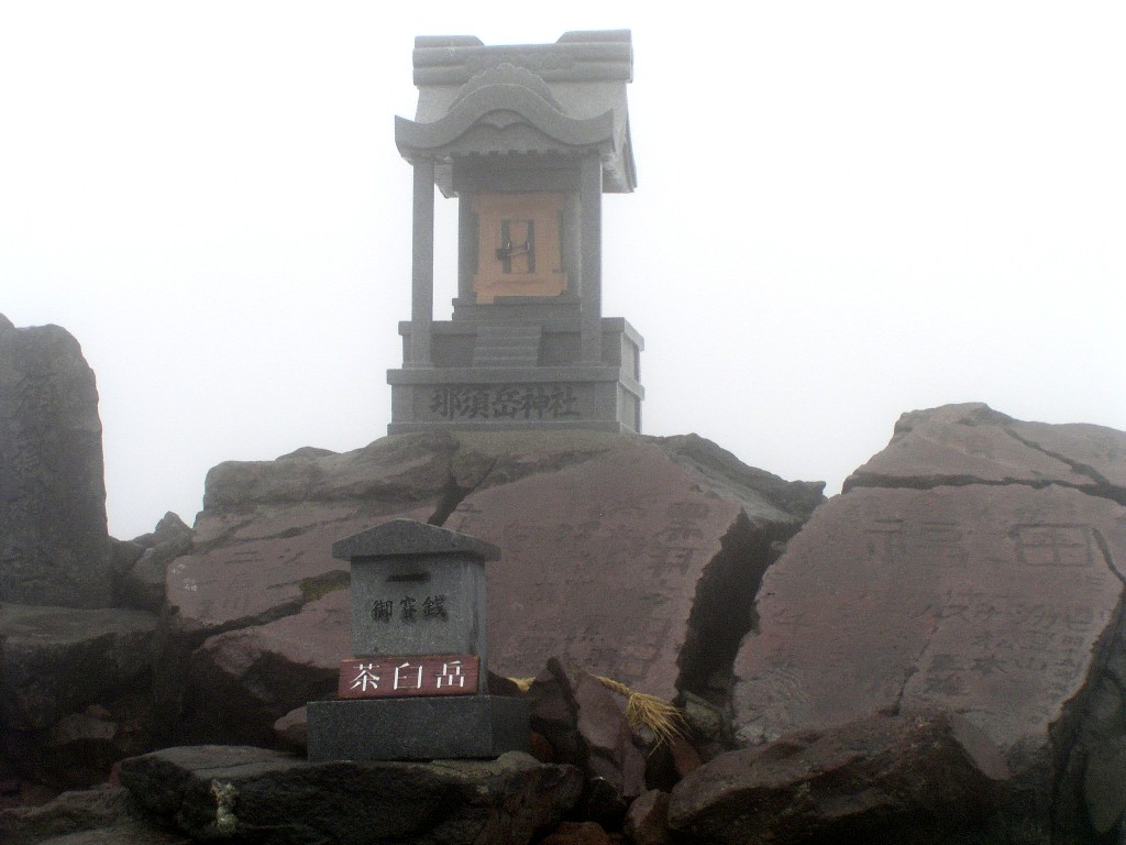 状況に応じ峰の茶屋から下山する覚悟も決めて進んだが、峰の茶屋に到着したときは、比較的 天候は安定しており、そのまま朝日岳に向かった、まだ周囲はガスに包まれているが時々ガスが 切れる状態だが峰の茶屋までは登山者も多かったが、そこを過ぎ朝日岳に向かったところ、登山 者は激減した、朝日の肩に着いたところ1組の登山者が休憩していたが、そのまま朝日岳に向か い昼食でもと考えたが、朝日岳山頂は休憩するような場所でもなく、そのまま朝日の肩まで戻り昼 食をし、三本槍を目指した、三本槍と言う為槍ヶ岳等のイメージだったが、全くそのイメージがな い、なぜ三本槍となったんだろうと疑問を残したまま三本槍を後にしたその後北温泉分岐から北 温泉を目指し下山開始したが、その頃よりガスが晴れだし雄大な那須連邦の全容を表してくれ た、もっと早くガスが晴れればと思ったが、その雄大な景色を楽しみながら下山した、下山した北 温泉も古い佇まいを残した山間の温泉でかなり人気のありそうな温泉と言う感じだったがバス停ま でもう暫く歩くため温泉はお預けした。 |