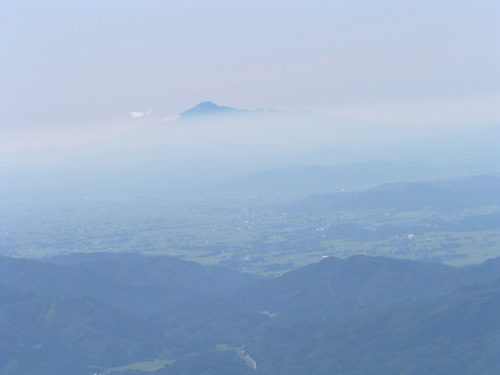 八合目の水場で水を補給し、男岳に最低13:00の線引きし急いだ、途中から田沢湖、鳥海山が綺麗に