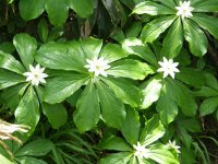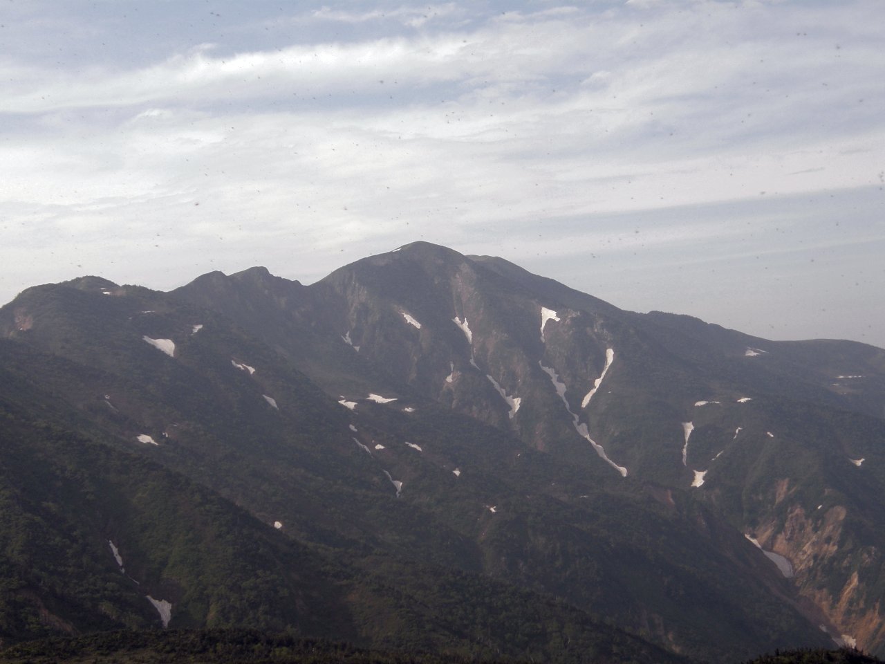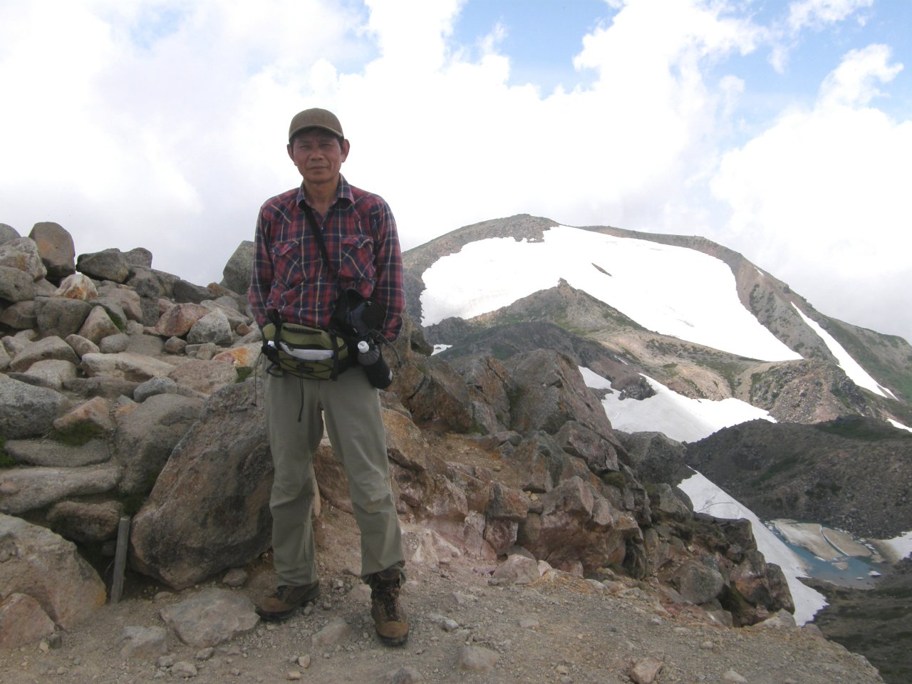 甚の助小屋から黒ボコ岩までのコースには雪渓あり、シナノキンバイなどの群生が多くなり小鳥のさえずりも心地良く聞こえた、黒ボコ岩付近で昼食タイムで木道の先の室堂平を眺めながらの昼食を楽しんだ、一緒に昼食したのは同じ岩手から参加した及川さん、高林さんで喜寿とのことだがとても元気で高山植物にも詳しく、高山植物の本を発行しているとの事で、高山植物については色々教えて貰いとても勉強になった。室堂平の室堂センターが宿泊場所で早目の到着となった、後は自由行動だったが、白山山頂への登頂は翌朝の予定だったが、先の昼食を共にした2名の方と白山山頂(御前峰)へ登頂した、途中高山植物も多く、ミヤマ黒百合やコイワカガミ等が咲いていた、山頂に到着し,大汝峰、剣が峰など目の前にして初めてこれ等の山の集まったのが白山だと知った、ゆっくり山頂を堪能し下山し宿に戻った。 |