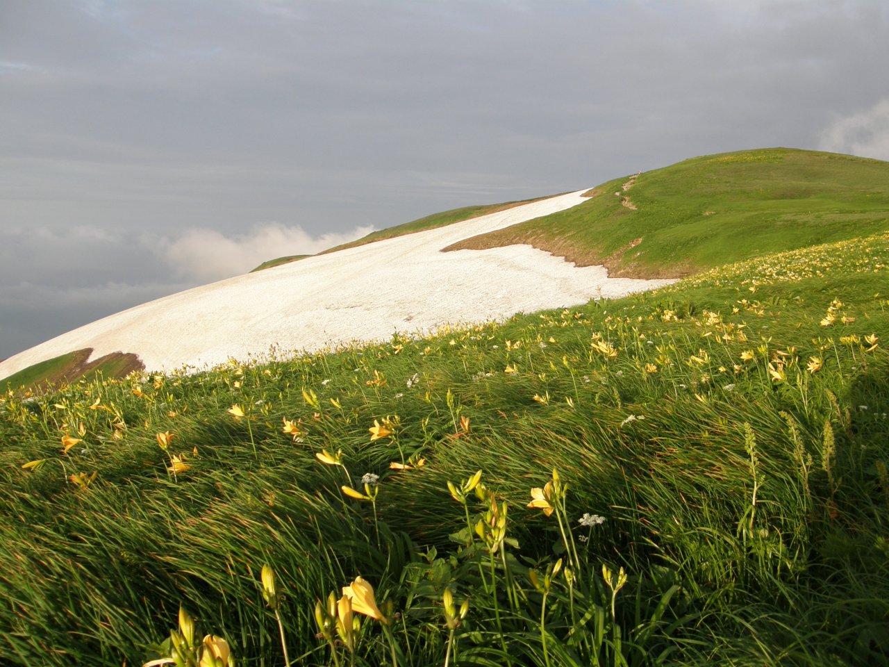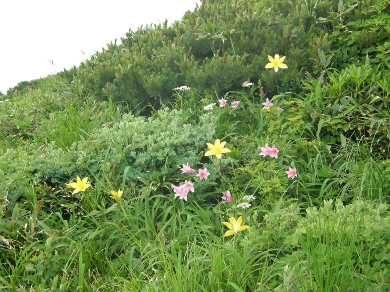 ニッコウキスゲとヒメサユリ 飯豊山頂で