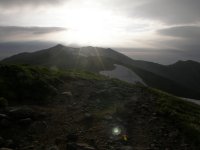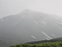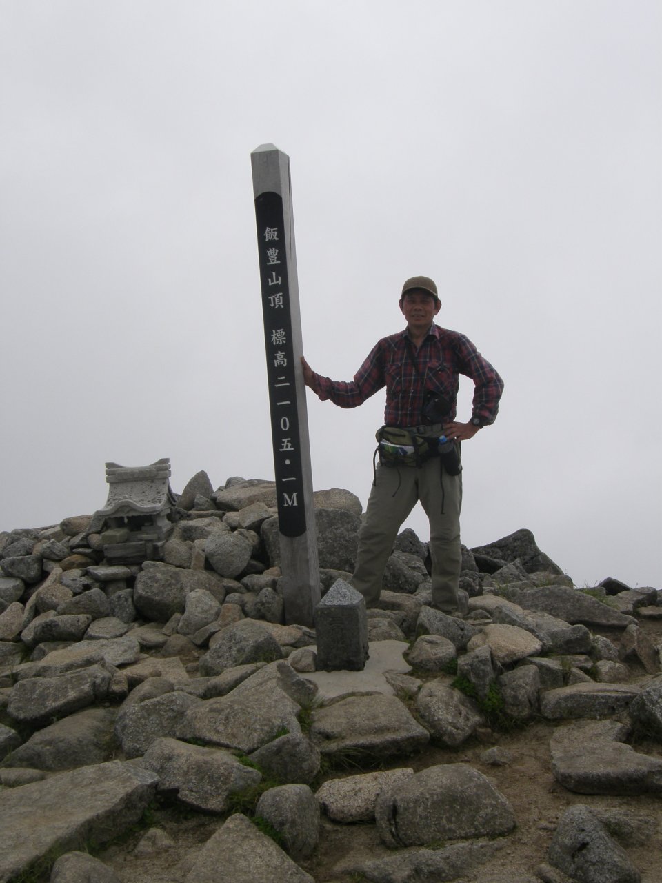 ご来光を楽しみに、目が早くから覚め外を見たが外はガスがかかり風が強い状態だった為、再度横になったが中々眠れない時間が続いた。外が明るくなり、眠ることを諦め、他の登山者も既に出発している人もいて山小屋も少しは余裕が出てきた為、温かいコーヒーを沸かし朝食をし、出発の仕度をした。外は風があり少し肌寒く感じるようだったが、少し準備体操をして出発した、またニッコウキスゲの中の登山道を飯豊山に向けて歩いた、最高に気分爽快だった、ガスも晴れて見晴らしも良くなり、前日と違った気分で高山植物や飯豊連峰の山々改めて素晴らしさを実感した。同行の摂津さんは下りにはかなり自信が有るようで、かなりスピードがありバランスが良い、無理に着いて行こうとすると足元が乱れる、自分自身でもスピードはある方だと思っていたが、自分のペースを守るようにした、登りになると追い着き追い越した、そのような繰り返しをしながら下山して来た。
