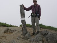 小屋で休憩した後、水場ばで水組みと、大日岳へ向けて少々の食料と水を持参し切合小屋から同行した摂津さんとスタートをした、ザックを小屋に置いて来た為,体は軽く、コースタイムの半分以下の時間で大日岳へ到着した、大日岳は飯豊連峰最高峰だが飯豊山程登山者も少なく、山頂の標もかなり古くなっていた、山頂で多少おやつなど食べながら休んだ時、ようやく崇拝している飯豊山を極めたと満足した、これも途中から同行してくれた摂津さんが、飯豊山を知り尽くしていた為、安心して此処まで来れた物と感謝の気持ちが大きかった、休憩後下山を開始した、山の風景、高山植物を楽しみながら尾西小屋に到着したが、大変な事になっていた、それは三連休と言う事で登山者は押しかけて来て、定員をかなりオーバーしており、外にはテントも多く張られていた。