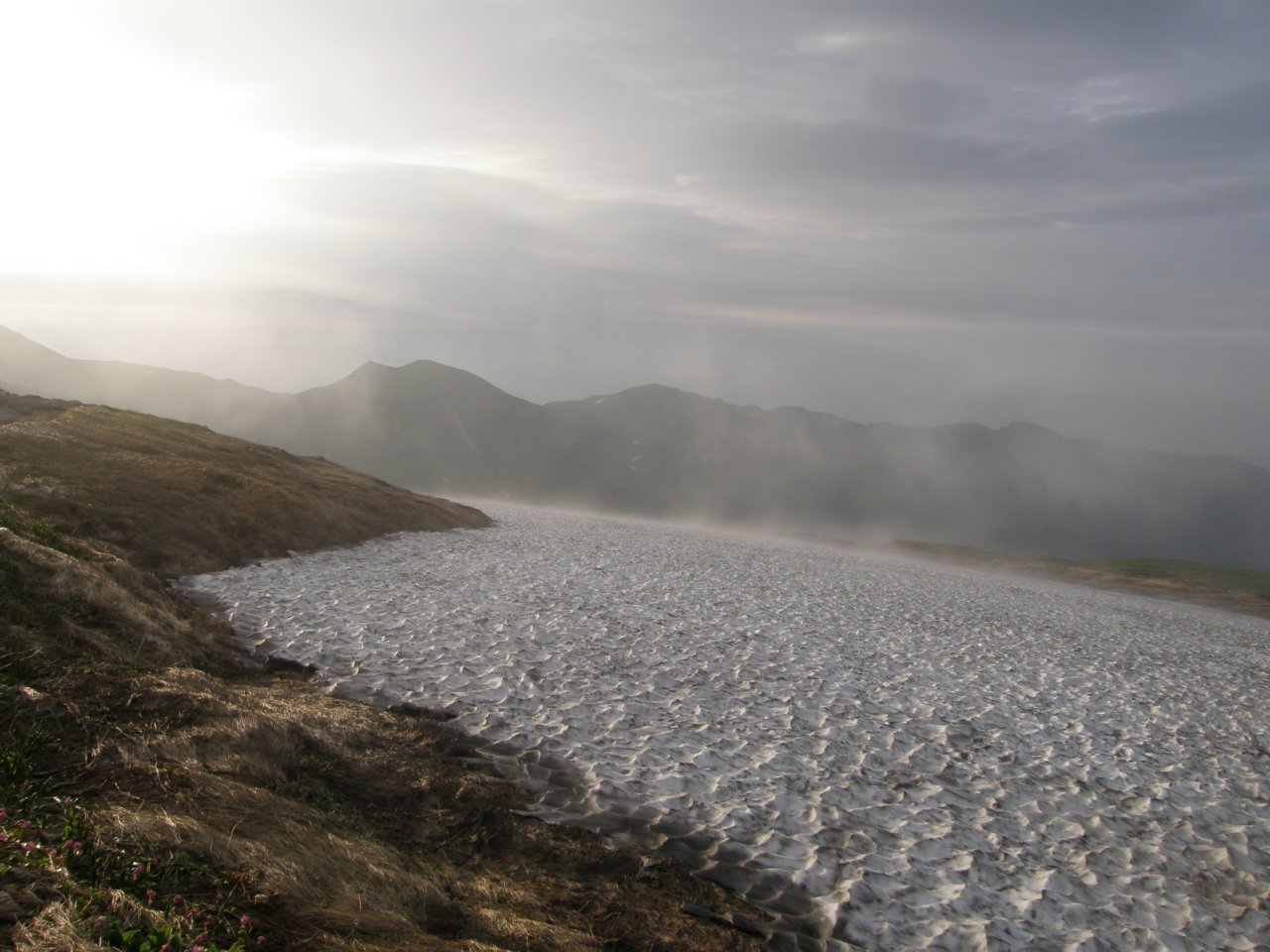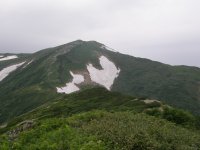 事前に得た情報と比較しながら歩いたが、少し時間が短縮されたが先が長く気が遠くなりそうだったが、時折ガスが晴れて見せる飯豊連峰の奥深さや雪渓の多さがとても雄大に感じられた。
