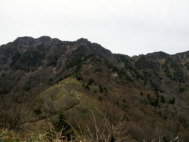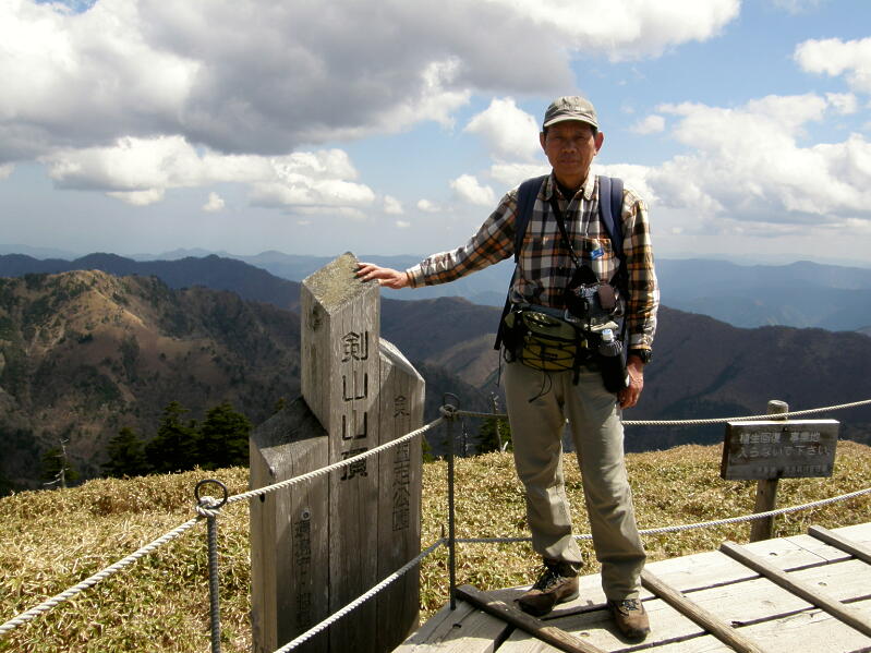 その様な思い掛け無い好天で、周囲の山が映え、楽しみながら歩くと、程なく大きな成就社があり、つい手を合わせた、岩手の山はまだ雪がありこのような気分で歩くのは早いなどと思いながら、歩いたが、山頂に近づくにつれて岩場が多くなり、鎖場等が続いた、しかし当ツアーは安全の為、迂回し鎖場は通らず、山頂に至った、四国の最高峰での休息を楽しんで下山した。