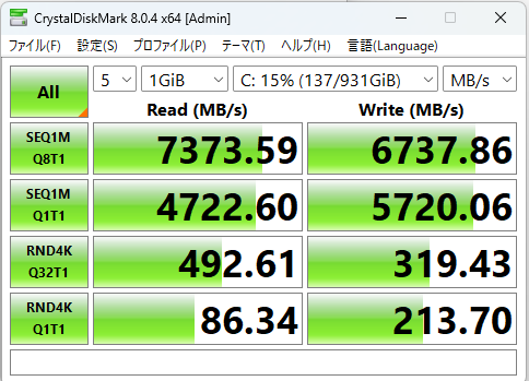 【感想】Gen4規格は初めて。AMDのCPUも初めて。慎重に始めました。7000台の値が出て、ほぼ満足。比較的安価なCPUでも、良い結果でした。INTELとAMDの選択ですが、数年前 からの評判通りAMDの優勢ですね。