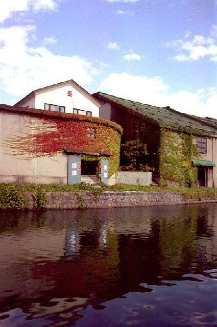 小樽運河のレンガ倉庫の並びは夕日に当たって綺麗な色が出ていた、特にレンガにからまるつたの色合いが変化にとんで素晴らしい被写体となっている。