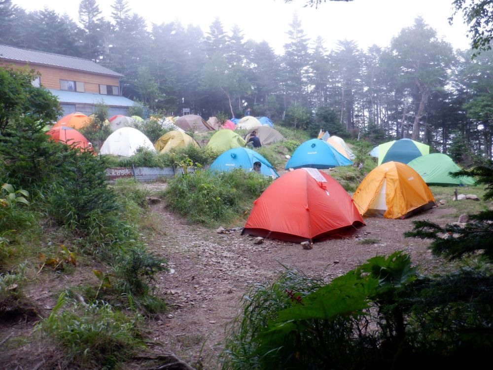 鳥倉駐車場から鳥倉登山口1792mへ歩き登山開始、三伏峠小屋2586mまでの3時間の登り、登山道はあちこち壊れており歩き難い、三伏峠小屋のテント場は満杯状態でした。