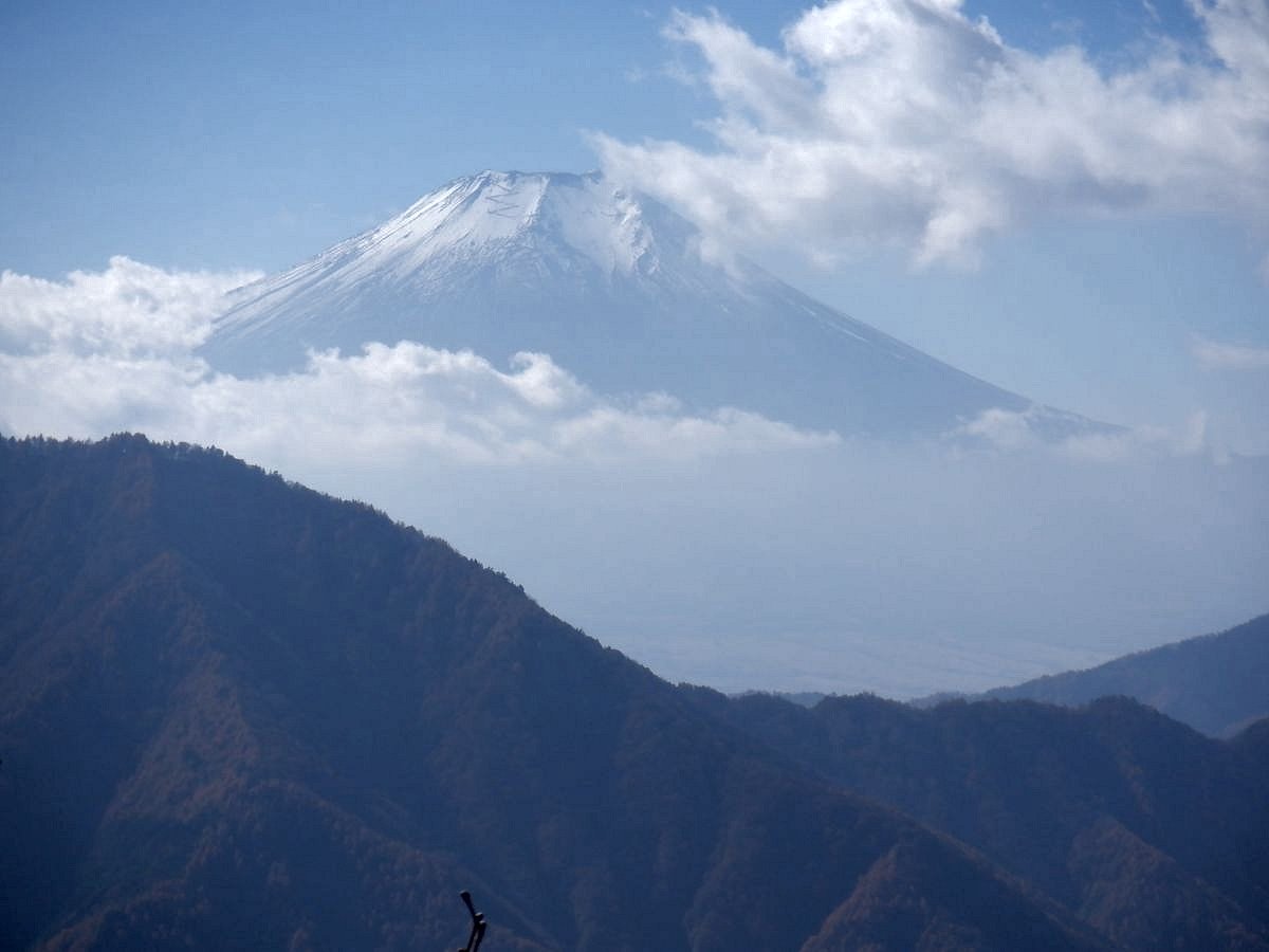 今倉山〜二十六夜山、は3年前の1月中旬に行きましたが、天気は良かったのですが少し残雪が有り北斜面の登山道がバリバリに凍っており軽アイゼンを付けて歩きました、今回は天気穏やかで風も弱く赤岩から蛭ケ岳・富士山・甲斐駒ヶ岳・仙丈ケ岳・金峰山や雁ケ腹摺山等が見えました。