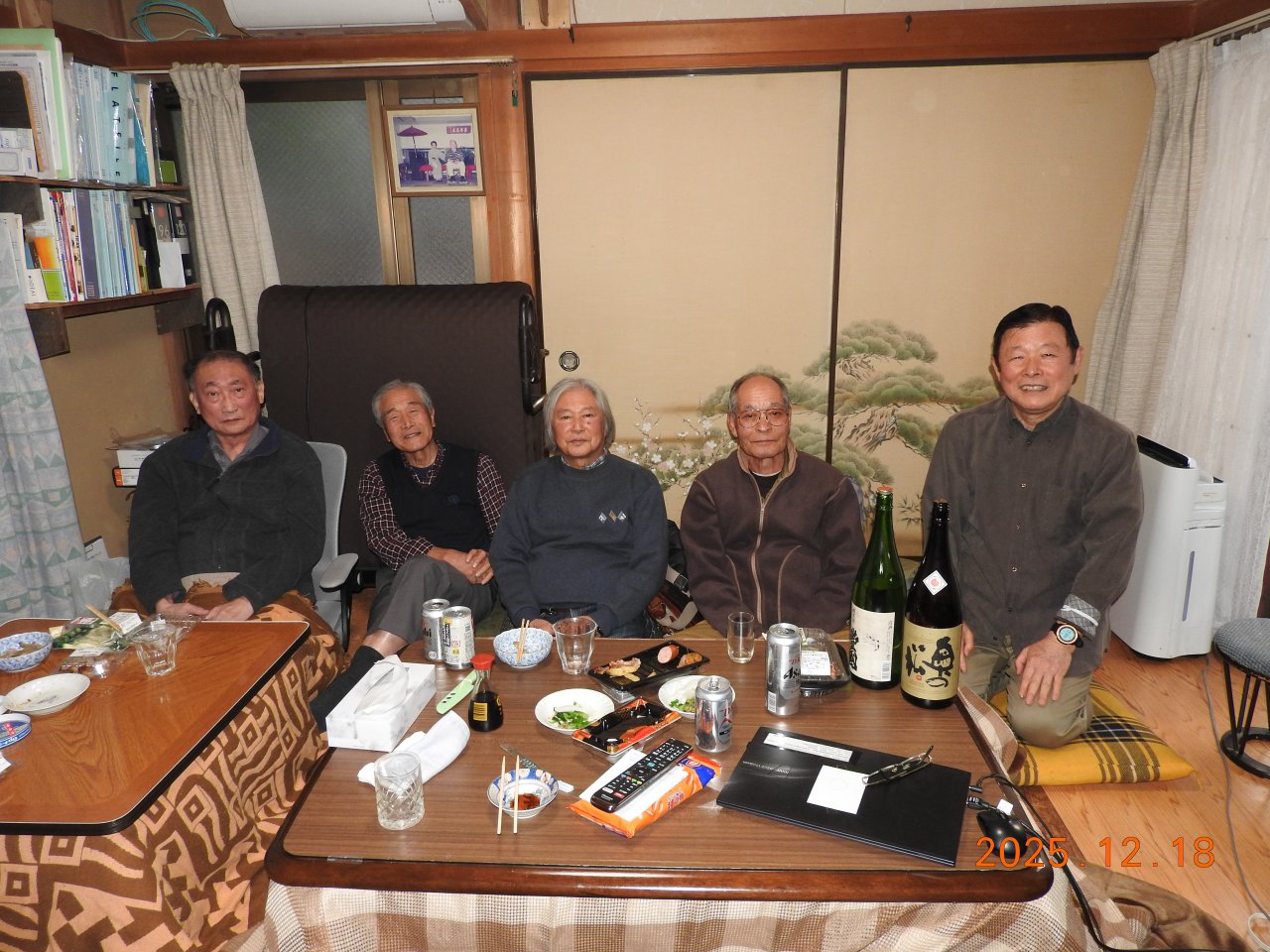 2025年12月18日(木) 動画・約3分 皆、歳をとりました。ゆっくり飲み、話で楽しみました。福島に帰郷している関根さんから、地酒の差入れ。 1.あだたら吟醸酒「奥の松」品評会1等 2.純米酒「豊国」 |