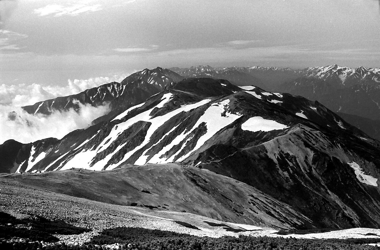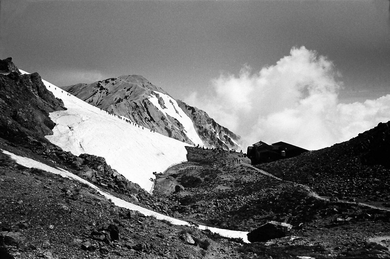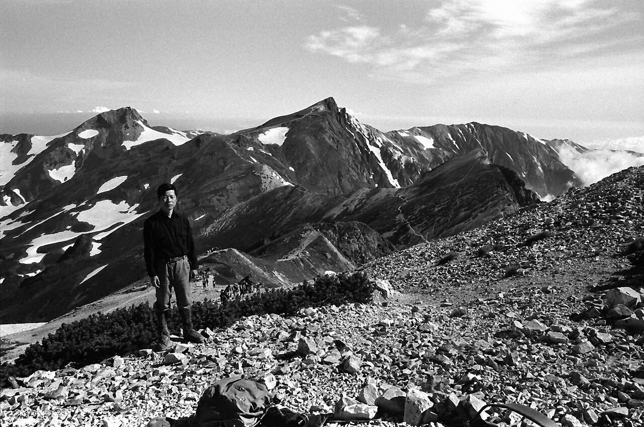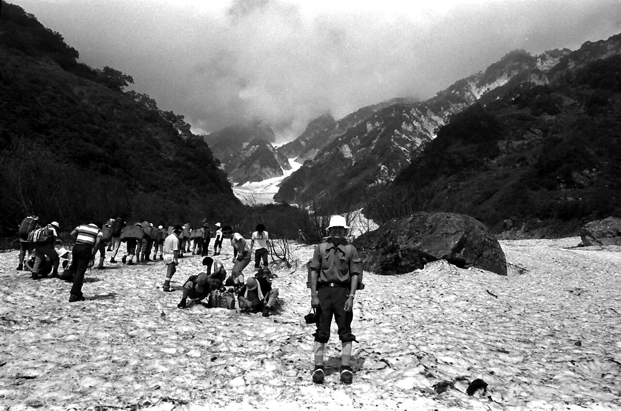 思い出: この登山は40歳の時でした。相棒は平良さんでした。十分に元気。夜行の列車で白馬まで。バス乗り換えで猿倉荘。雪渓の登りは混雑していてゆっくりと。天気も良く写真も沢山。当時は、自宅に暗室を作り、全紙パネルを現像していました。今思えば週末に夜行で登山に、平日は帰宅後、現像して遊んでいました。唐松岳から八方尾根を下り、何とか頑張り、夜行で東京まで。月曜日には会社でした。とても楽しい日々でした。