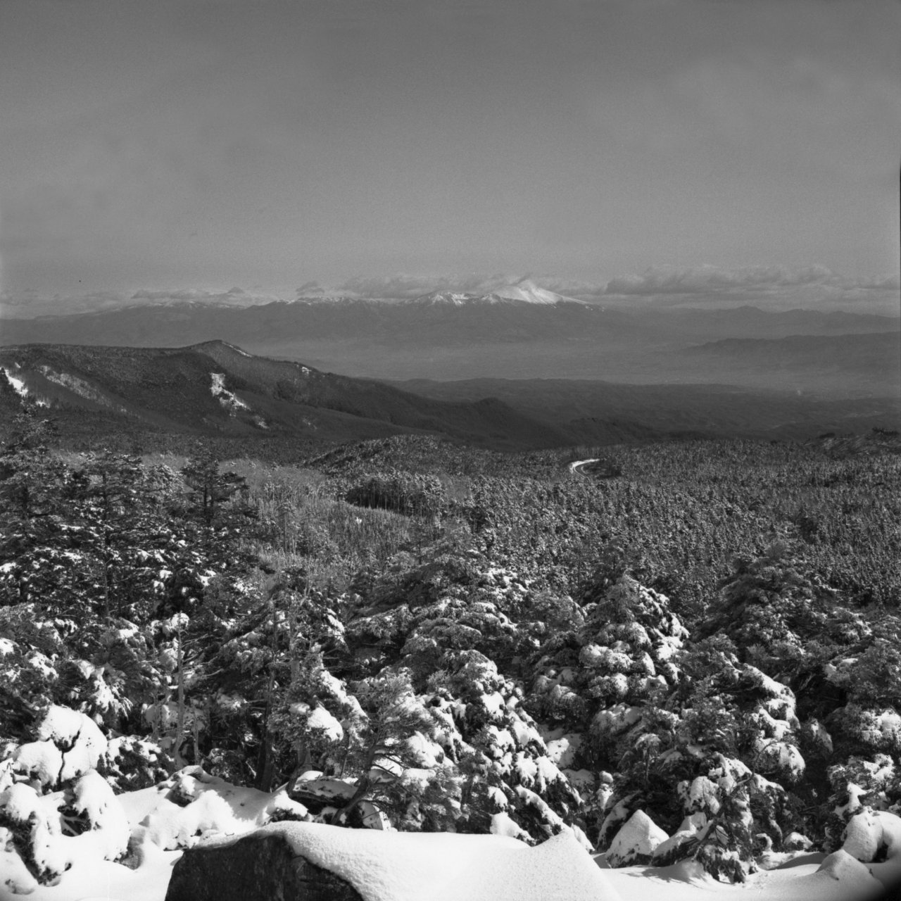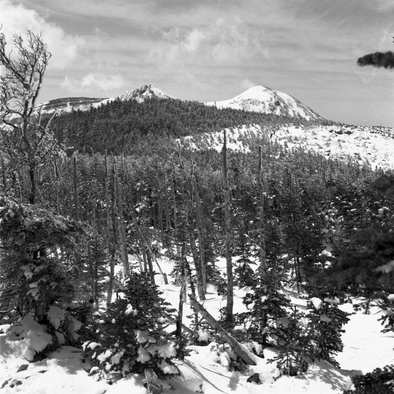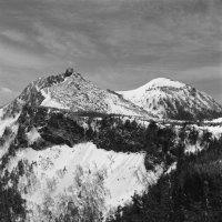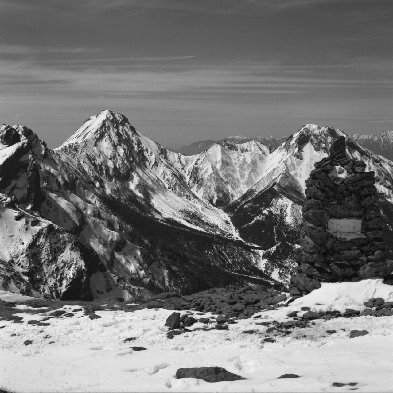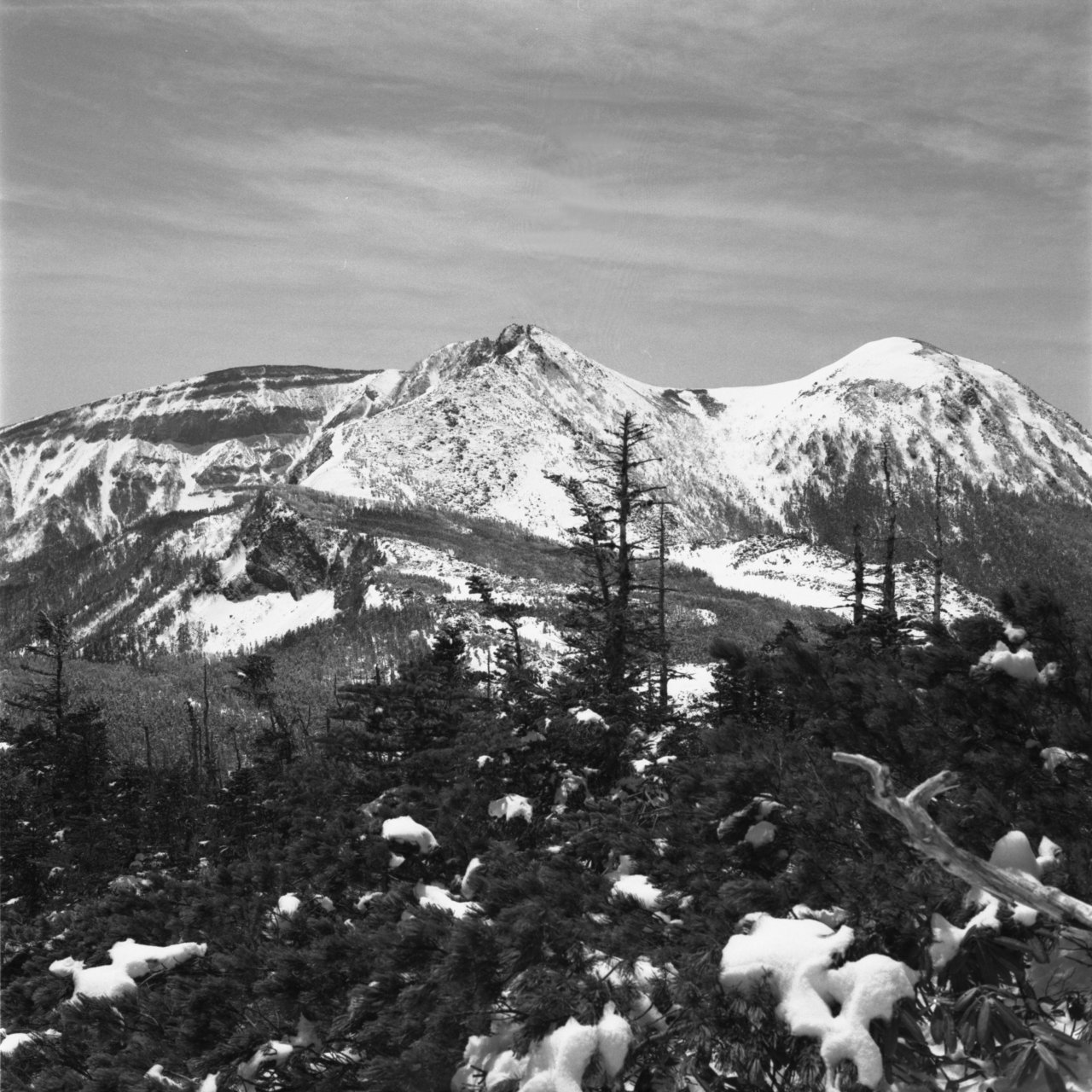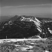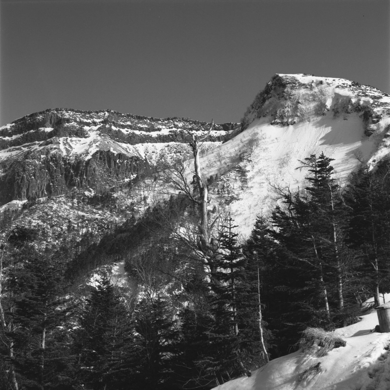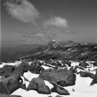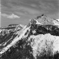 5月3日麦草峠から入る。カメラはヤシカマット6X6版の2眼レフ。カメラの設計は古いが、ブローニ版のフィルムを使え、シャッターも500があり、使用上問題なし。途中、コンバージョンレンズを使用したが、まずまずの写りでした。フイルムはコダックのTX400。現像は皿現像。現像液はD76標準現像。
