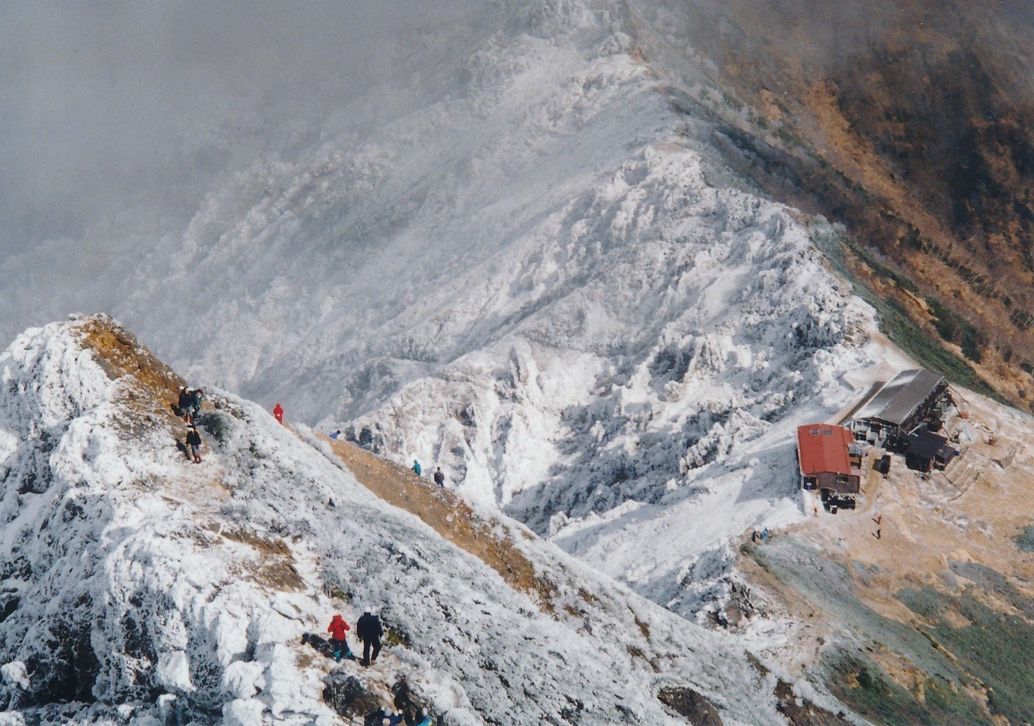 予期せぬ出来事で前日に雪が降り、山の紅葉ではなく雪景色となった。自動車が奥まで入れるようになっていた。美濃戸山荘まで。地蔵尾根は急ではあったが要所には鎖があった。但し、凍りだしたらアイゼン必要。赤岳の北斜面も鎖はあるが部分的で無い所は危ない。今回、レンズは28〜135ズームでISO400、1/125、F11〜F16で撮影。オーパで設定。阿弥陀岳を登らなかったが時間的に目一杯だった。山小屋は2段ベットで封筒型シュラフで寝た。食事、炬燵、ウイスキー(アーリィタイム)。腕時計の気圧706Hps、小屋代、1泊2食で7,000円
