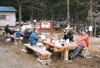 笠取小屋の前