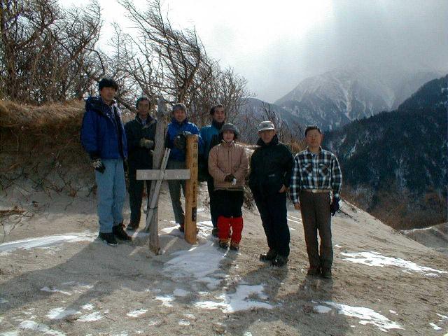 山頂にて 守屋,関根,八木,井出,佐藤,影山,岩田