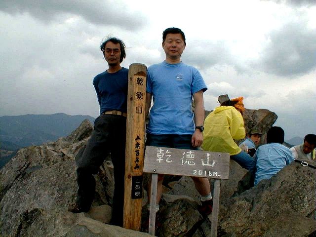 頂上から金峰山の五丈岩が見えました。写真では少し映っていますので探して下さい。一番奥の方です。