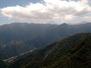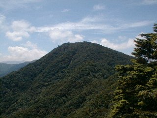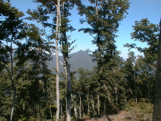 お坊山からの下山途中に見る滝子山1590mのとんがったピーク。 |