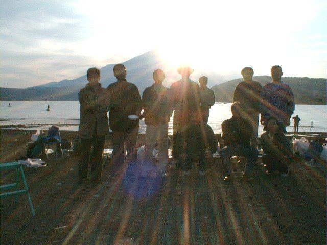 夕方は石割の湯に行く。露天風呂に入り、1時間の長湯。月が上がって来たので月見をする。影山さんがウイスキーを持ってきてくれたので一口。2日前が13夜だったので今日はほとんど満月。途中、外人さんが入ってきたので又、話が弾む。6時過ぎに温泉を出発し、すっかり暗くなった山中湖を後にする。今回の写真は影山さん、森本さんから提供して頂きました。写真としては普通は、日の出を撮るのですが、今回は、日暮れまで遊び、富士山頂のわずか右の斜面に落ちる日没を見ました。
