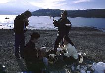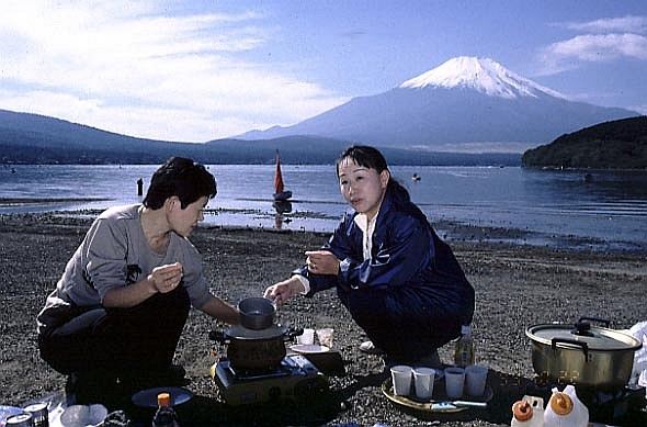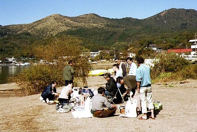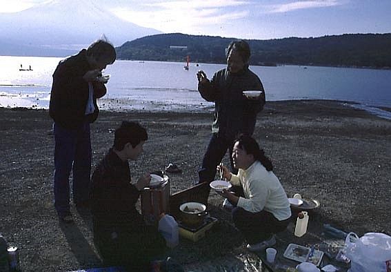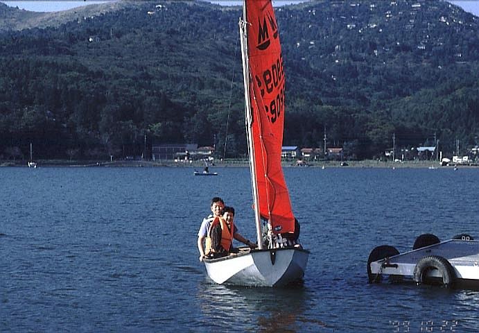 行きの中央高速は渋滞で時間がかかったが、10時30には山中湖に着いた。すぐ、荷物を降ろし鍋の用意。斎藤さんは、炭のコンロを持ってきてくれたので、網で魚を焼いた。井出さんの用意してくれた里芋を皮をむき、鍋料理。今回は、家庭で使っているガスコンロを持っていったのだが、火力が弱く、中々煮えあがらないので料理が時間かかった。自分の方は、ヨットを持っていったので、交代で皆で遊んだ。風が程よく吹いたので快適に走った。