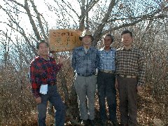 今回、参加したメンバーです。頂上は、狭いのですが、この木の下に席を設けて、一杯飲みました。今日は、駅では4度と低めでしたが、頂上では、風もなく穏やかで、暖かでした。