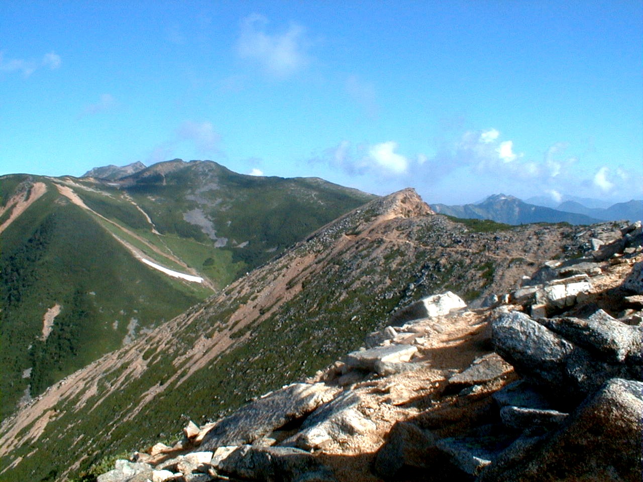 テントを担いでの縦走は、ここ10年は、やった記憶がない。でも、なんとか歩けた。今、この記録をまとめながら、少しは、自信が戻って来た気がする。平地にいると酒の飲み過ぎたりもするが、今回は、まったく酒を飲まないようにし、節制した事もあって、体が動いたようです。それにしても、5泊もして、天気に恵まれ、良い写真が沢山撮れて、整理を楽しんでいます。今回、総てをデジタルカメラ131万画素(部分的にはエコノミーモード使用)で350枚も撮り、ホームページにどの写真を載せようかと考えています。