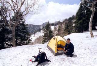| 《感想》久しぶりに、雪の上に寝ました。春山なので気温は下がらなかったが、寝袋の下にはマットが必要だと感じた。この山は大変、気に入りました。湿原に花が咲く頃にまた、来たいと思います。相棒の関根さんも相変わらず元気でした。 | |