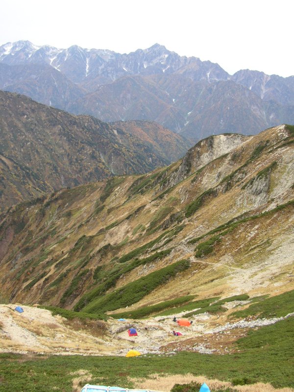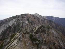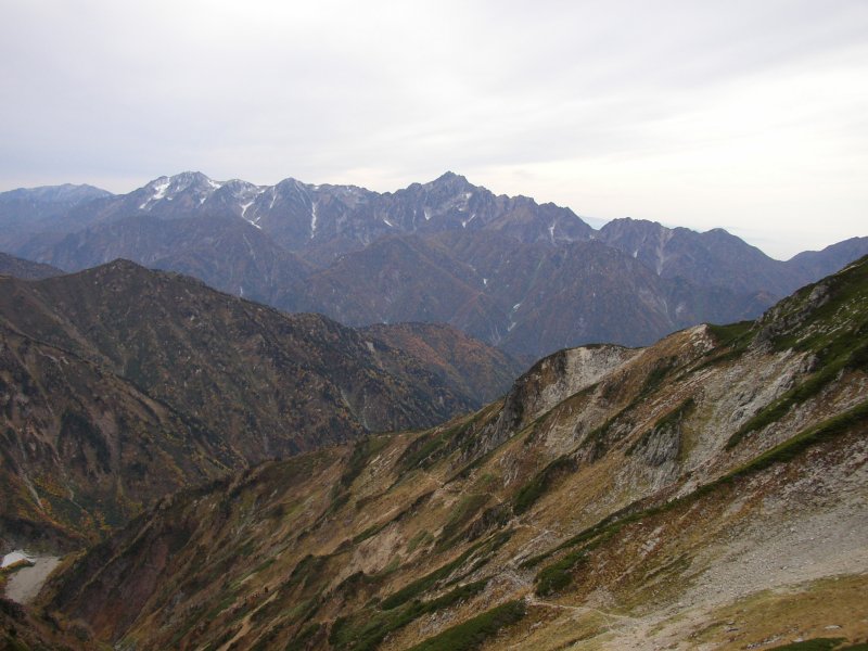 はるか遠くに穂高と槍ヶ岳が見えていた。 |