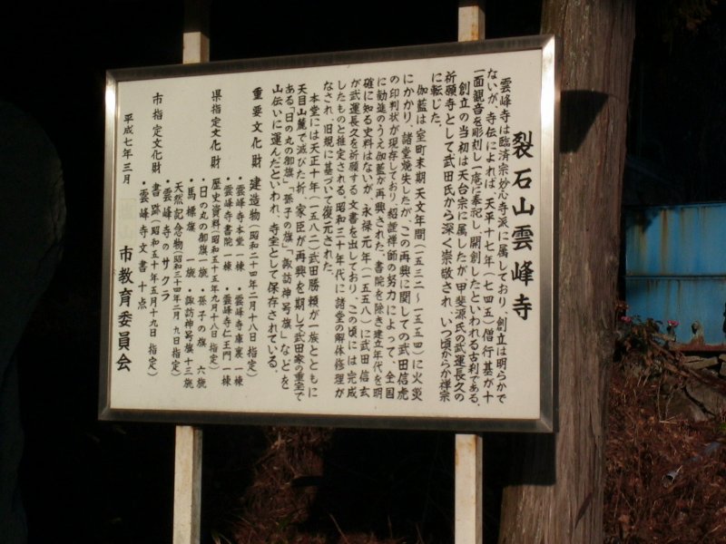 | 7:50裂石バス停傍の案内板 | 8:00雲峰寺 | 10:30丸川峠 | |